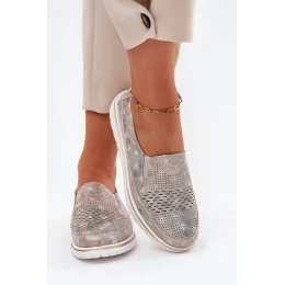 Dámské boty jsou vyrobeny z přírodní kůže s prolamovaným vzorem na přední straně. Tento model má gumičky, které umožňují přizpůsobit obuv šířce nohy. Namontované na platformě. Tento model je extrémně lehký a pohodlný na používání. Stélka je rovněž vyrobena z přírodní kůže. Při výběru velikosti se řiďte tabulkou velikostí.