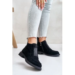 Semišové Nízké Boty Na Plochém Podpatku Zateplené D&A JC42-23 Černé