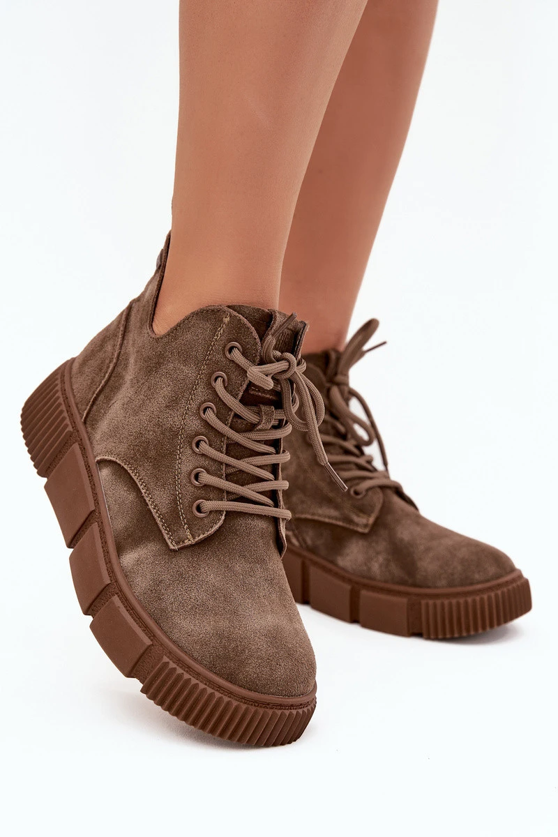 Semišové nízké dámské kotníky na platformě Big Star SS274594 béžové
