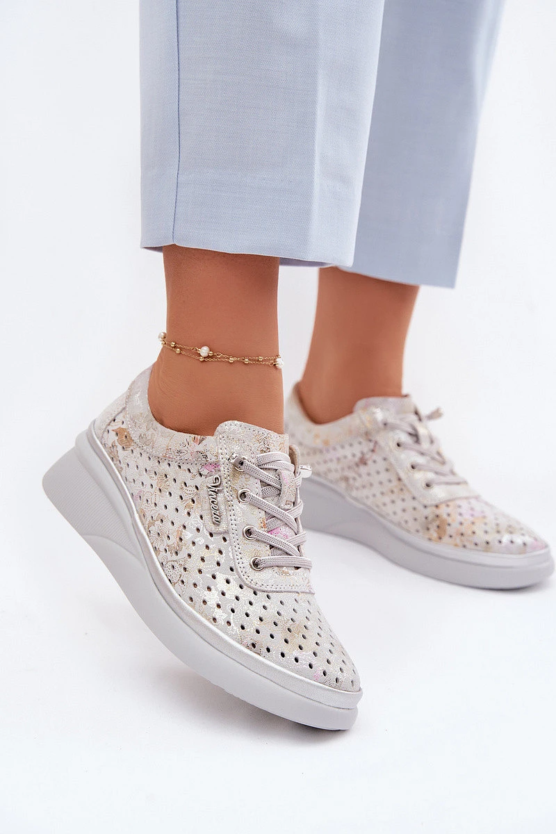 Semišové perforované dámské polobotky Vinceza 79603 šedé