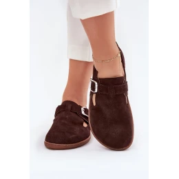 Semišové polobotky barefoot dámské s přezkou Zazoo N1261 čokoládové