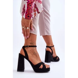 semišové sandály na čtvercovém podpatku Černé Powerful