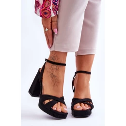 semišové sandály na čtvercovém podpatku Černé Powerful
