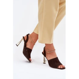 Semišové sandály na jehlovém podpatku se zdobeným náramkem CheBello 4440 čokoládové