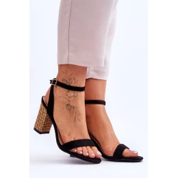 Semišové Sandály Na Spleteném Podpatku Černé Selila
