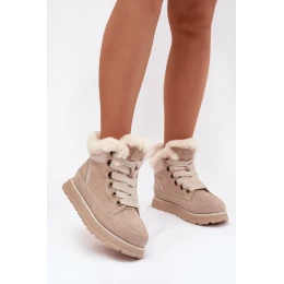 Semišové sněhule dámské na platformě s kožíškem Big Star SS274371 béžové