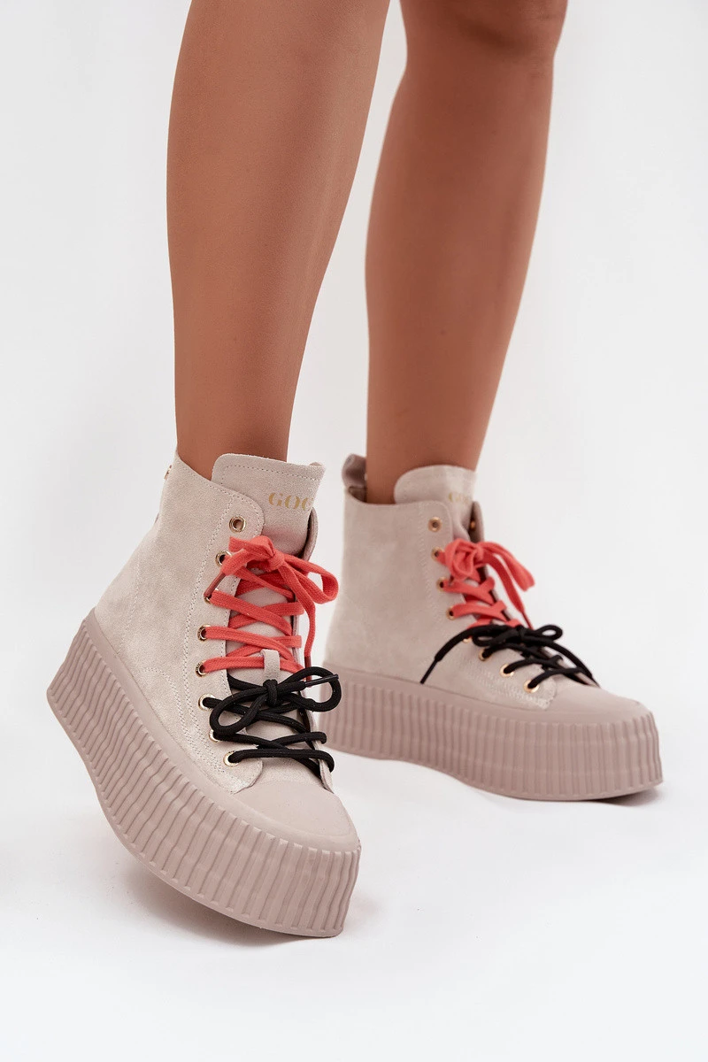 Semišové zateplené dámské tenisky na robustní platformě GOE SS2N4047 béžové