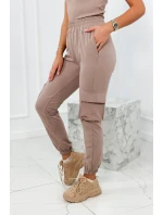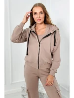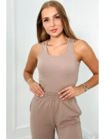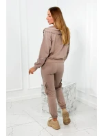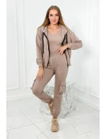 Set 3 v 1 mikina + top + kalhoty tmavě béžová