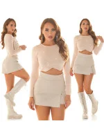 MATERIAL Material: Thick sweatshirt fabric 90% cotton 10% polyester PRODUCT DETAILS Neckline: Wrap V-neck
