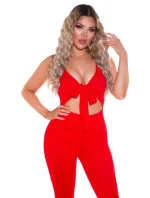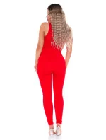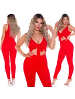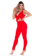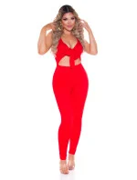 Dámský sexy overal s rafinovaným výstřihem OV18844 Béžová s kamínky - Koucla