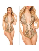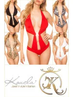 Tělo inspirované monokini Zalia. Chcete odhalit hýždě, stehna, nohy, upozornit na své poprsí a pas? Věnujte pozornost tomuto designu. Je to zajímavé uspořádání černé elastické látky, krajky, spousty a spousty tenkých pásků. Tělo opticky prodlužuje nohy. Zpět v brazilském stylu. Sexy design.