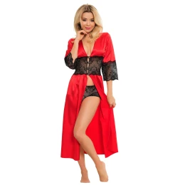 Exkluzivní a zároveň neuvěřitelně romantické dlouhé negližé ze splývavého saténu je kvintesencí ženskosti v působivé edici. Košilka má v pase širokou krajkovou vsadku, která jej krásně zvýrazňuje. Je zakončen skleněnými knoflíky, které nepochybně přitahují pozornost. Rukávy jsou zakončeny stejnou krajkou. Sada obsahuje koketní krajkové šortky. Celek je dokonalou kombinací elegance a originality. Spodní prádlo je zabaleno v krásném velkém balení (ideální pro dárek).