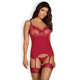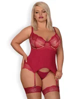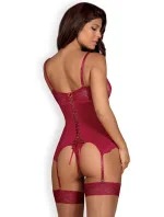 Smyslný korzet Rosalyne v barvě červeného vína, doplněný tangy. Překvapení večera? - Ty a tahle kráska!