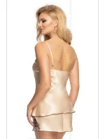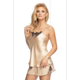 Dopřejte si plné pohodlí a krásný, neuvěřitelně ženský vzhled Mallory Set je dvoudílná souprava nočního prádla vyrobená z vysoce kvalitního italského saténu. Mírně vypasovaná halenka na tenkých, jemných ramínkách s působivou krajkovou vsadkou ve výstřihu je dokonalým úvodem a tvarované šortky s krajkou na bocích jsou dokonalým zakončením tohoto kompletu.