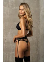 Podprsenka, podvazkový pás a tanga ušité s důrazem na detail. Krajkové lemování a černá látka tvoří dokonalé duo. Háčky na zádech, nastavitelná ramínka a řemínky zajistí pohodlí a smyslný vzhled.