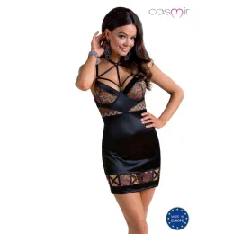 Smyslné, elegantní košilka s trochu prudérním charakterem. Netradiční výřezy v dolní části košilky ve spojení s pruhy umístěnými na výstřihu jsou nabídkou pro ženy, které rády experimentují se svým šatníkem a mají rády netradiční řešení. Výztuhy navíc zdůrazňují poprsí a zvedají ho tak, aby vypadal co nejlépe. K tomu kalhotky. Výrobek vyroben v Polsku.