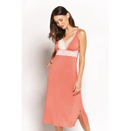Novinka! Působivá, hladká noční košile v dlouhé verzi z měkkého, pružného úpletu. S hlubokým výstřihem stylově zakončeným krajkou. Mimořádně romantická, s jemným, delikátním, ženským půvabem. Tenká ramínka umožňují odhalit výstřih i ramena.