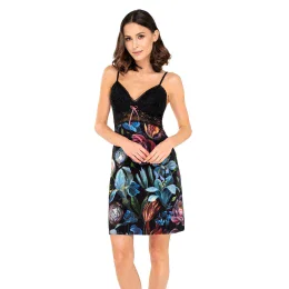 Výjimečná noční košile ušitá z měkké viskózy, z krásného vzorovaného úpletu s malebnými pivoňkami. Naživo působí ještě lépe - květiny jsou jako ručně malované, upoutají pozornost. Celek je měkký, pružný, ideální pro relaxaci a stává se příslibem úspěšné relaxace. Krajkový horní díl, černý, profilovaný, měkké košíčky podšité jemným materiálem zespodu. Nastavitelné popruhy.