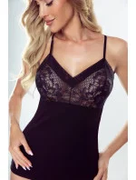 Smyslná dámská košilka vyrobená z kombinace viskózy a krajky. Pohodlná a zároveň okouzlující na úzkých ramínkách. Délka před kolena.