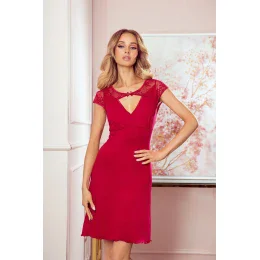 Noční košile z viskózy a krajky s originálním střihem. Špičatý výstřih, krajkový vršek imitující bolerko, krajková záda. Navrženo a ušito v Polsku.