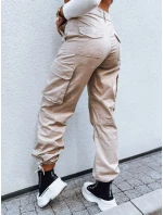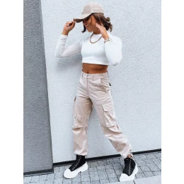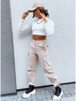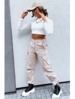 Světle růžové dámské pletené kalhoty se zavazováním .