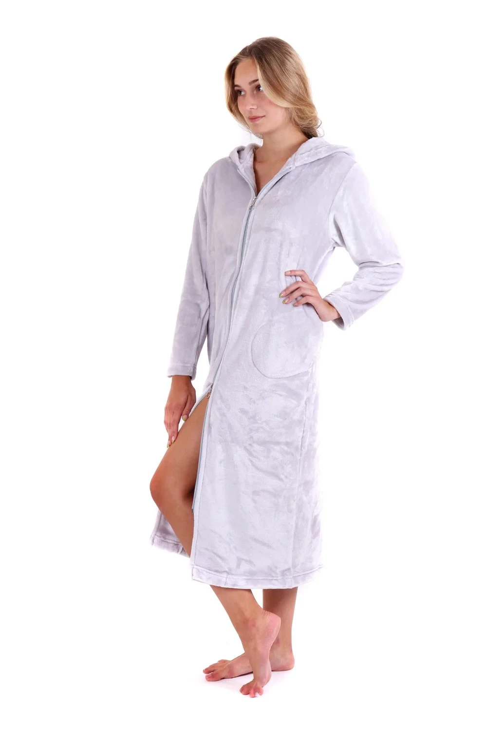 Dámský župan Siena s kapucí na zip 3656 světle šedá - Vestis