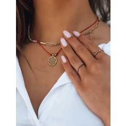 Náhrdelník SIESTA je návrh, který bude vypadat skvěle jako doplněk mnoha stylizací. Na červené šňůrce je ozdobný přívěsek ve zlaté barvě a zapínání je nastavitelné.