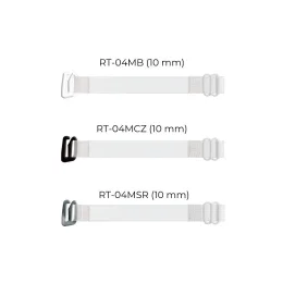 Průhledná silikonová ramínka 10 mm, neutrální k pokožce. Odolné na vysoké teploty, atmosferické vlivy či mechanická poškození. Ramínka mají zavené spoje.