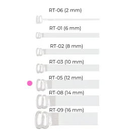 Ramínka o šířce 12 mm vyrobeného z průhledného materiálu, neutrálního dla pokožky. Mají tepelně zatavené spoje a díky tomu dobře drží. Háčky jsou plastové.