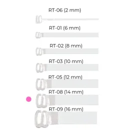 Ramínka v šířce 14 mm vyrobená z průhledného materiálu, neutrálního pro pokožku. Mají zatavené, kvalitní spoje. Háčky jsou plastikové.