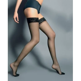 Smyslné samodržící punčochy Veneziana. Obepínají nohy jako mlha a svádějí sexy květinovou krajkou umístěnou na silikonu (7 cm). Cítit se sexy... Tloušťka 15 DEN. Složení: 88 % polyamid, 12 % elastan.
