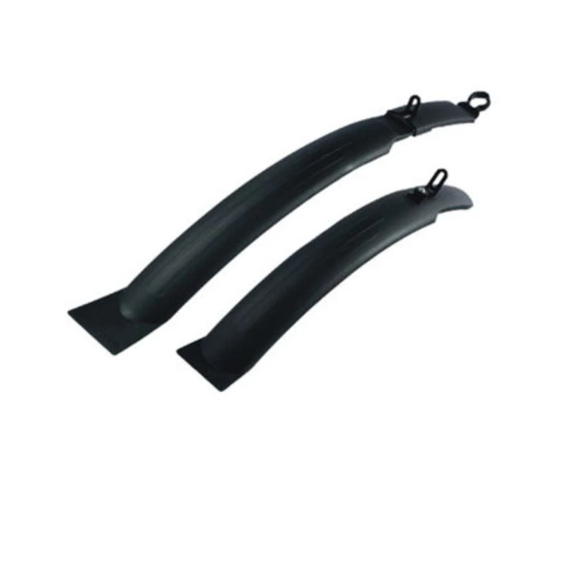 Sada blatníků s moderním designem, vhodná pro 24" a 26" kola s profilem pneumatik do 65 mm. Optimalizovaná pro montáž na V-Brake. Samočisticí leštěné vnitřní strany. Zadní část namontovaná na speciálním plastovém nástavci pro široké vertikální a horizontální nastavení a rychlou montáž. Prohlubně v blatníku v místě gumičky V-Brake, konzolové rameno pro rám s kloubem a kanál pro lanka přehazovačky. Přední část namontovaná na desce s plastovou maticí pro rychlejší montáž.