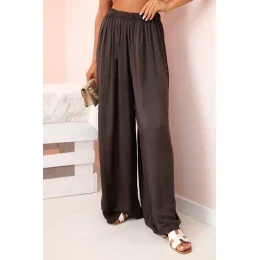 Široké dámské viskózové kalhoty s elastickým pasem hnědá