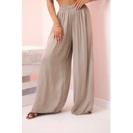 Široké dámské kalhoty z viskózy s elastickým pasem velbloudí