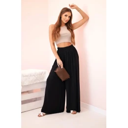 Široké dámské viskózové kalhoty s elastickým pasem černé