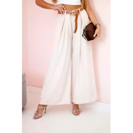 Stylové kalhoty se širokými nohavicemi jsou skvělou volbou pro ženy, které oceňují pohodlí a moderní vzhled. Vyrobené z vysoce kvalitního materiálu, skvěle padnou na postavu a zdůrazňují její přednosti. Pásek v sadě umožňuje dokonalé přizpůsobení v pase a dodává celku elegantní charakter. Díky širokým nohavicím kalhoty vypadají velmi efektně a zároveň poskytují volnost pohybu. Ideální jak pro každodenní outfity, tak pro formálnější příležitosti – skvěle se hodí k elegantní halence, košili nebo přiléhavému svetru. Univerzální velikost je vhodná pro ženy nosící velikosti S, M nebo L.