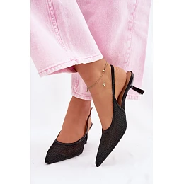 Síťové Sandály na Tenko Podpatku Černé Calora