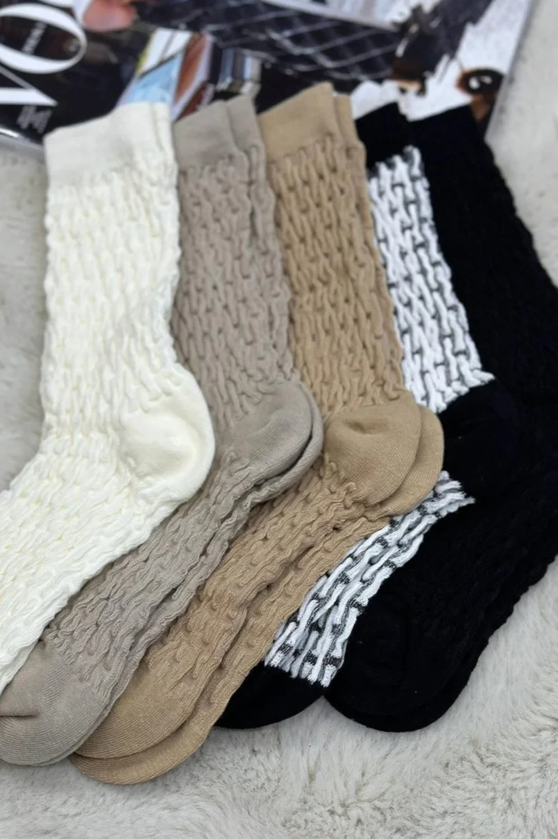 Dámské vzorované ponožky jsou pohodlné a hřejivé doplňky, kteréóre poskytují vynikající tepelnou izolaci. Obvykle jsou vyrobeny ze silnější příze, díky čemuž jsou měkké a příjemné na dotek, a často mají strukturu nebo vazbu, kteráóre dodává charakter a styl. Tyto ponožky jsou ideální pro chladnější dny, skvěle se hodí do bot nebo holínek i pro chvíle odpočinku doma. Jejich pevná konstrukce zajišťuje odolnost a pohodlí a rozmanitost barevóre a vzorůóre umožňuje sladit je podle vašeho individuálního vkusu.