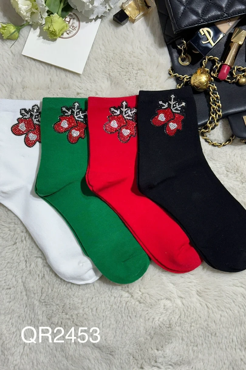 Hladké bavlněné ponožky se slavnostní aplikací jsou ideální volbou pro zimní dny. Na kotníku jsou umístěny třpytivé červené rukavice, které ponožkám dodávají radostný a slavnostní nádech. Lesklé detaily aplikace jsou poutavé a přinášejí atmosféru svátečního kouzla. Ponožky jsou vyrobeny z vysoce kvalitní bavlny, jsou měkké a pohodlné pro celodenní nošení. Díky hladkému provedení je lze snadno kombinovat s různou obuví, od tenisek až po kozačky. Tyto ponožky jsou ideální pro rodinná setkání, zimní večery nebo jako dárek a během svátečního období vnesou do každého dne nádech tepla a veselí.