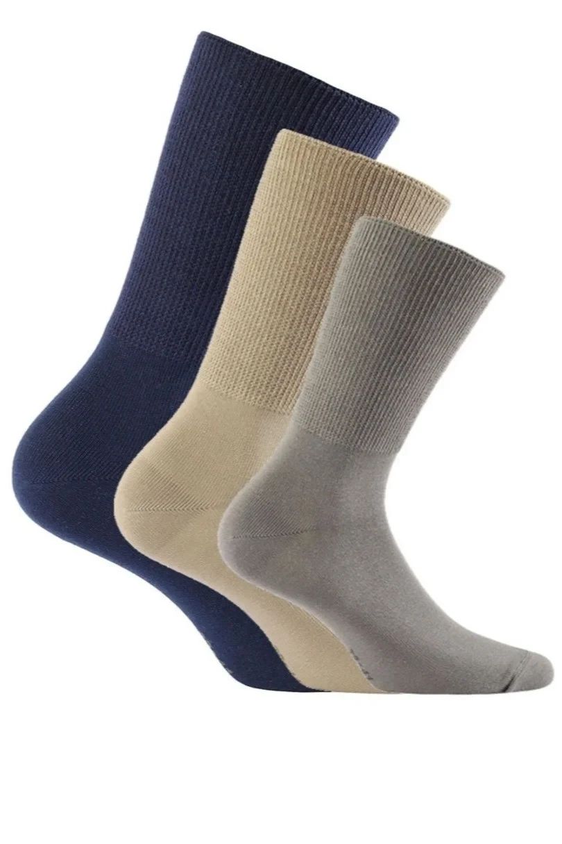 Ponožky z měkké bavlny, které jemně přilnou k noze. Absence švu a plochý šev zajišťují vysoký komfort nošení a pohodu. Ideální pro osoby s poruchami krevního oběhu, oteklýma nohama.