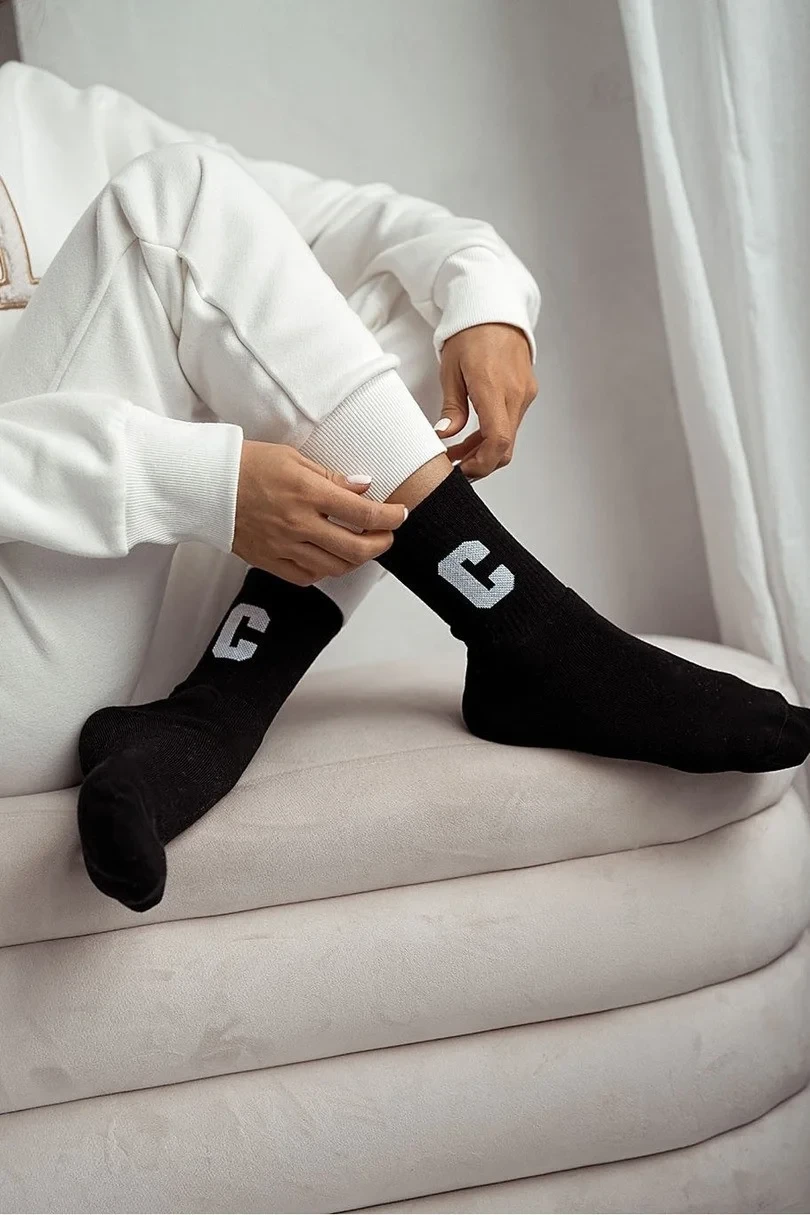 Dámské sportovní ponožky s froté stélkou, zdobené v horní části písmenem C.