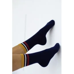 Bavlněné dámské ponožky hladké zakončené pruhy pro lidi, kteří ocení pohodlí. Jsou ideální pro každodenní styling.