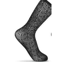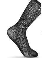 Dámská žakárová ponožka s ozdobným kamínkovým lemem.