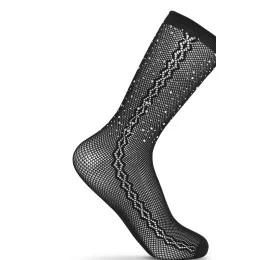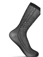 Dámská ponožka se vzorem a ozdobným kamínkovým lemem.