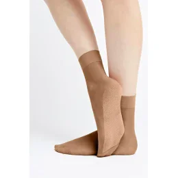 Dámské ponožky s bavlněnou podrážkou.Prodyšná struktura bavlny umožňuje pokožceós volně dýchat a zabraňuje nadměrnému pocení.Díky jemné kompresi mají ponožky relaxační vlastnosti, podporují krevní oběh a snižují pocit únavy nohouós. Ideální pro každodenní nošení, poskytují zdraví a pohodlí v jednom.