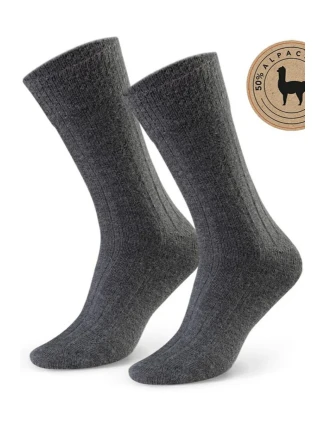 Skarpety męskie z wełną alpaki, trzykrotnie mocniejszą od owczej wełny, nie wchłaniają zapachów, mają właściwości hipoalergiczne i termoizolacyjne. Ich prążkowana struktura zapobiega zbędnemu uciskowi na stopie.
