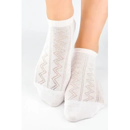 Stopki damskie bambusowe ST048 to połączenie komfortu, lekkości i elegancji. Wykonane z cienkiej wiskozy bambusowej z dodatkami, zapewniają wyjątkową miękkość i przewiewność. Ich delikatna ażurowa faktura oraz płaskie szwy sprawiają, że stopki są niemal niewyczuwalne na stopie, a bezuciskowy ściągacz gwarantuje doskonałe dopasowanie bez dyskomfortu. Dzięki oddychającej dzianinie skóra pozostaje sucha i świeża przez cały dzień. To idealny wybór na cieplejsze dni oraz dla osób ceniących sobie wygodę i wysoką jakość.