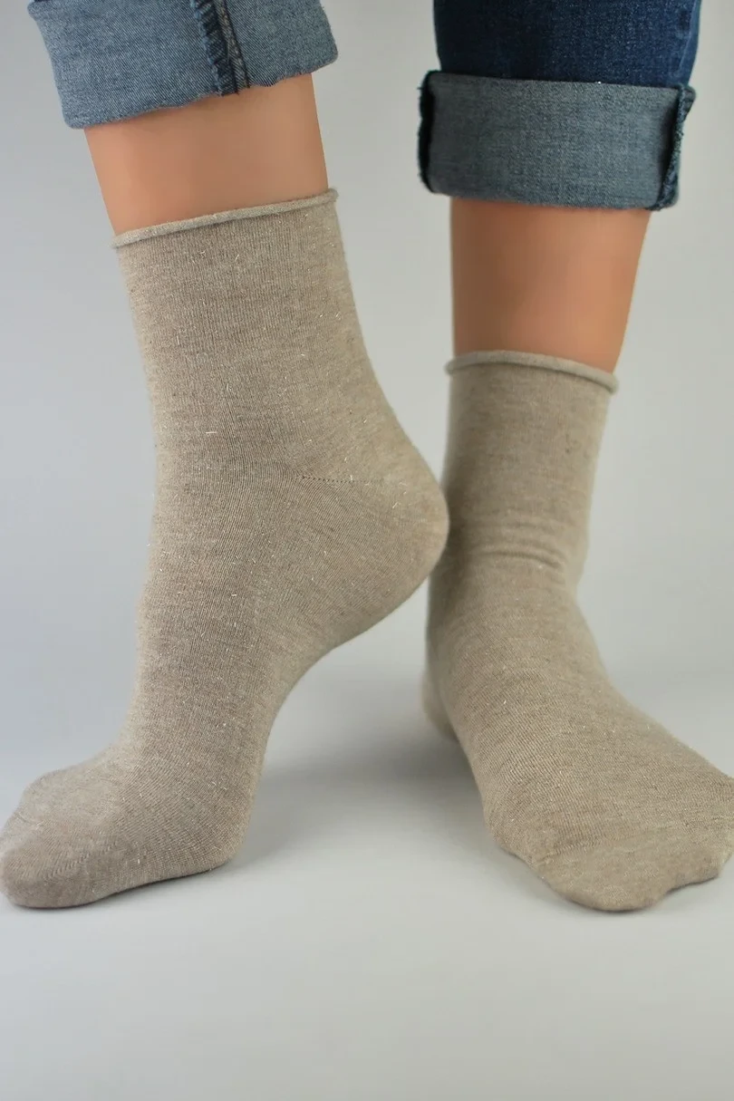 Dámské ponožky bez tlaku s lesklou lurexovou nití. Materiálové složení: 79 % bavlna, 16 % polyamid, 4 % elastan.