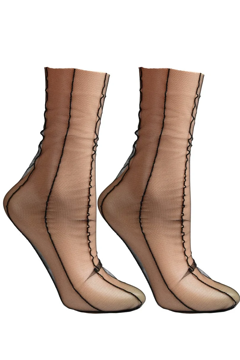 Tenké dámské ponožky ze síťoviny s podlouhlými tenkými pruhy připomínajícími švy jsou stylovým a moderním doplňkem šatníku, který kombinuje eleganci s jemným, lehce odvážným designem.Síťovinová struktura materiálu jim dodává jemnou průhlednost, která jim dodává lehkost a sofistikovaný půvab.Pruhy připomínající švy vedou svisle po celé délce ponožek, vytvářejí iluzi prodloužení nohou a zdůrazňují jejich štíhlost.Pruhy jsou tenké a rovnoměrně rozmístěné, což celkovému vzhledu dodává elegantní, ale minimalistický dojem.Díky své průhlednosti a stylu se tyto ponožky budou dobře hodit k elegantním i ležérnějším outfitům a dodají jim módní, ale decentní zakončení.