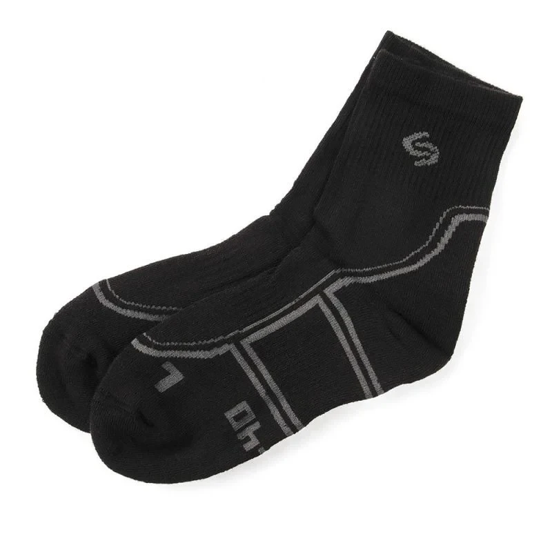 Skarpetki do uprawiania nordic walkingu oraz do trekkingu. Trójwarstwowe, profilowane wewnętrzne frotte amortyzuje wstrząsy i chroni wrażliwe części stopy przed otarciami i urazami. Unikalna, innowacyjna konstrukcja włókien przędzy COOLMAX® zapewnia maksymalny komfort użytkowania, poprzez utrzymywanie właściwej temperatury i odprowadzanie wilgoci na zewnątrz. Dzięki temu stopa styka się z miękką, zawsze suchą dzianiną. W przypadku zamoczenia skarpetek, czas ich schnięcia jest znacznie krótszy, niż skarpetek bawełnianych, co ma duże znaczenie przy użytkowaniu w ekstremalnych warunkach. Skarpetki są dostosowane do anatomicznego kształtu lewej (L) i prawej (R) stopy poprzez odpowiednio wyprofilowaną część frotte. LYCRA® w całym wyrobie zapewnia znakomite przyleganie do nogi. Opaska elastyczna na śródstopiu zabezpiecza przed przesuwaniem się skarpetki podczas ruchu. Odpowiednio wyprofilowana dzianina na pięcie (kształt "Y"), doskonale przylega do stopy i stabilizuje skarpetk